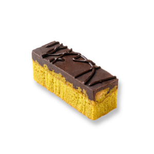Trompe l'oeil of a white chocolate egg with a creamy mango interior