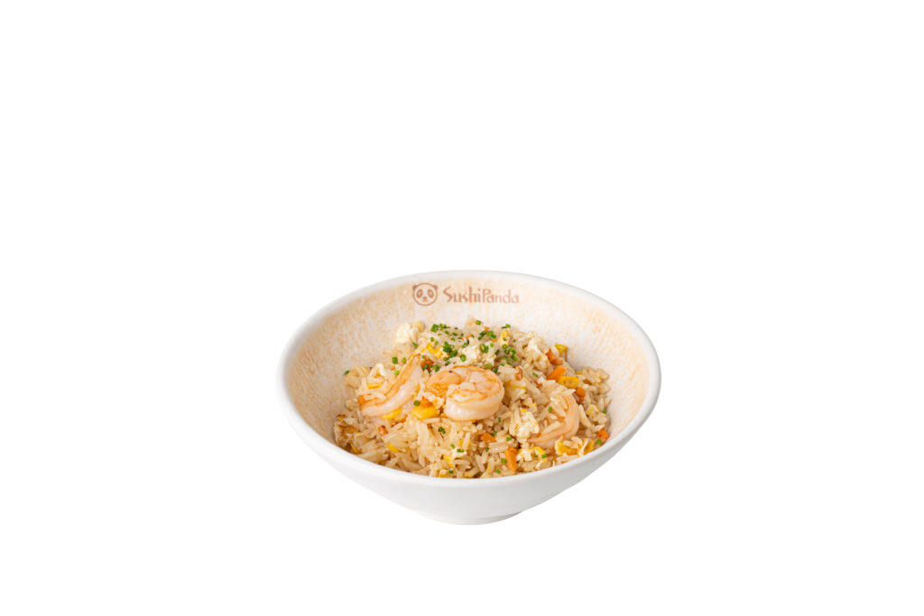 Arroz salteado, con verduras, gambas y salsa wok